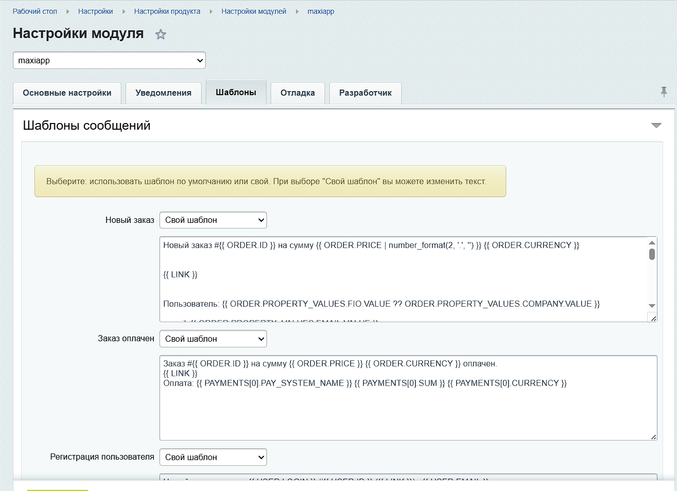 - Кастомизация шаблонов сообщений