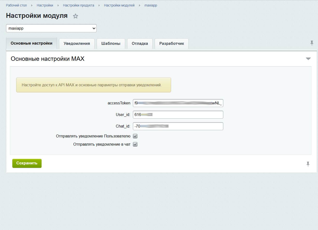 - Доступ к API мессенджера «Макс»